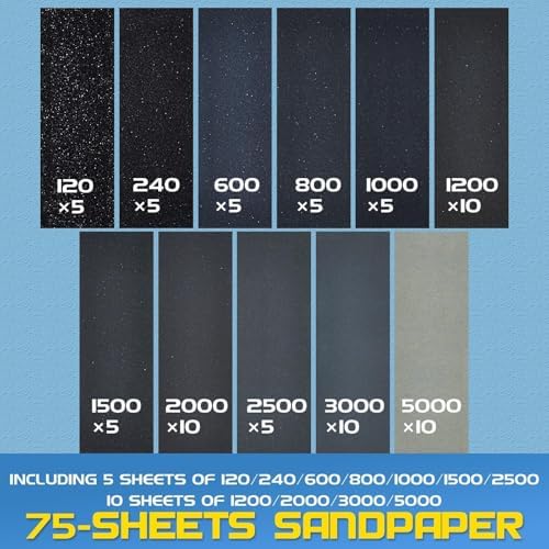 – **Grains variés :** Ce set comprend des papiers abrasifs allant du grain 120 au grain 5000, vous permettant de réaliser des travaux de ponçage brut jusqu’à des finitions ultra-lisses.